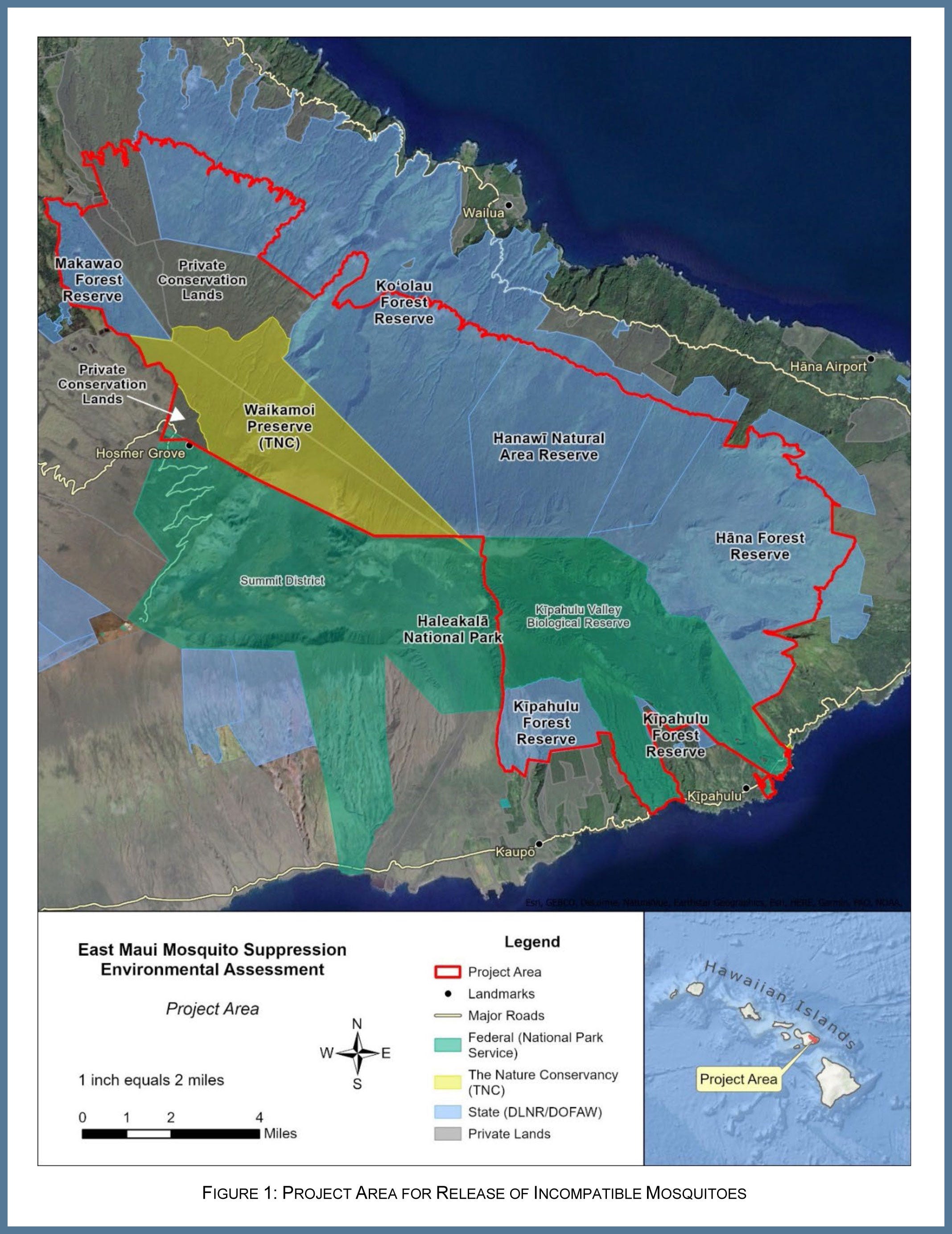 According to the final environmental assessment (EA/FEA) for the Maui mosquito project: